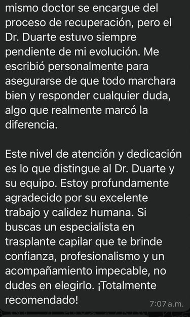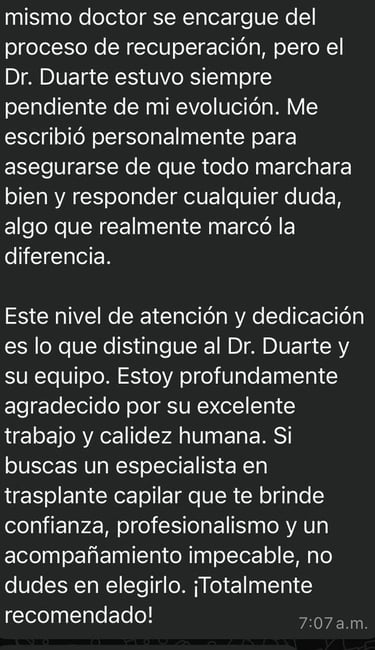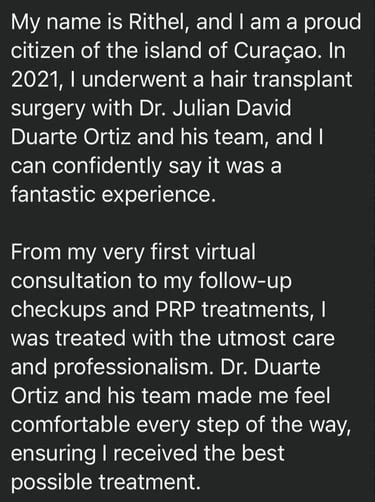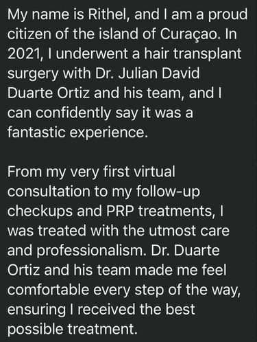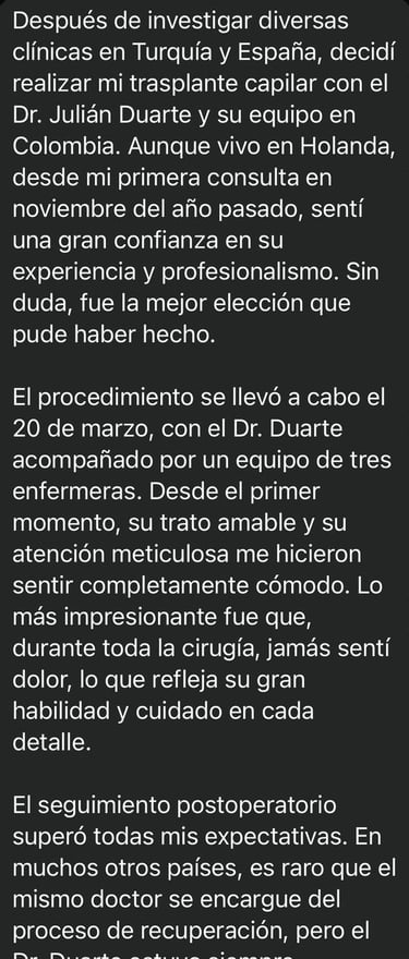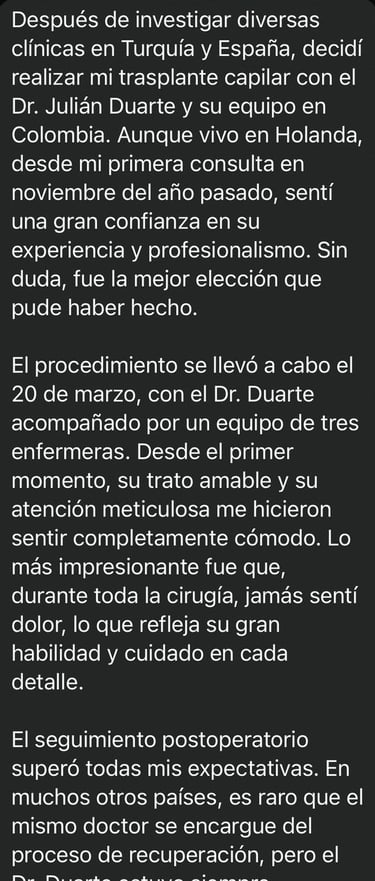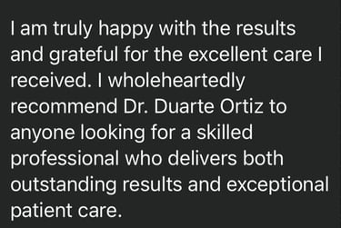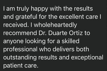 El tratamiento con el Dr. Julián Duarte transformó mi vida, los resultados son increíbles y la atención del equipo fue excepcional